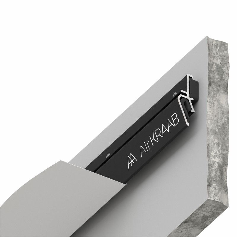 Вентиляционный теневой профиль AIRKRAAB 2.0 создан, чтобы уравновесить давление воздуха и устранить возможные колыхания полотен в помещении.