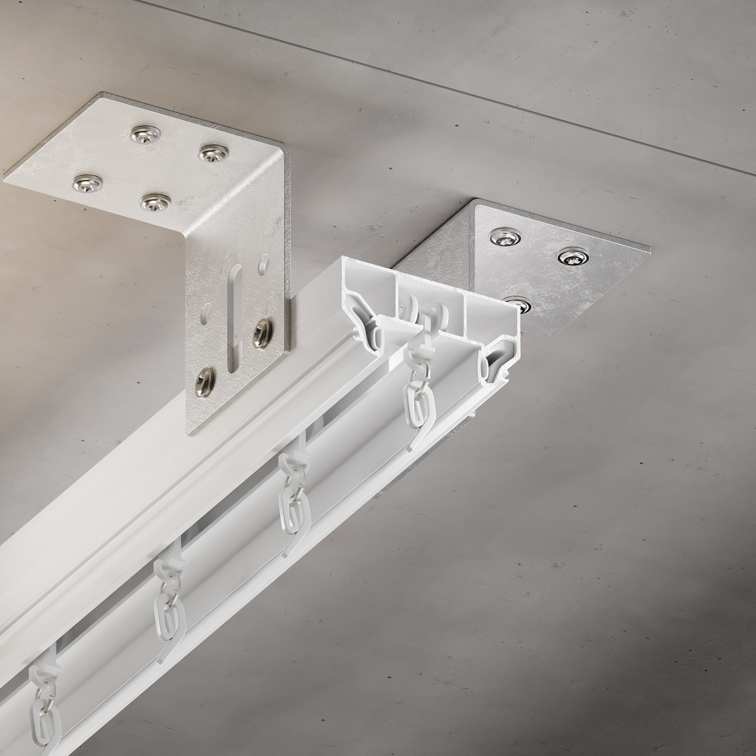 Однорядный карнизный профиль для установки штор. Формирует нишу глубиной 12,5 мм. Пазы под гарпун закрываются PVC-вставкой. Профиль обеспечивает точную стыковку со всеми профильными системами BORZZ
