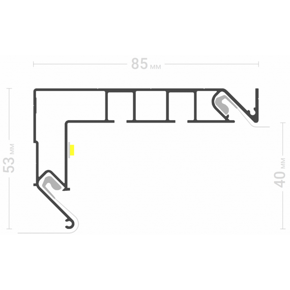Профиль Flexy GARDINA2 02 для изготовления скрытых карнизных ниш с двумя пазами для установки штор и гардин. Для гарпунной системы крепления полотна с боковой заправкой.
