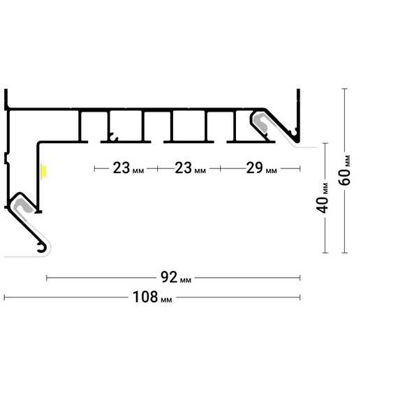 Профиль Flexy GARDINA3 03 для изготовления скрытых карнизных ниш с тремя пазами для установки штор и гардин. Для гарпунной системы крепления полотна с боковой заправкой.