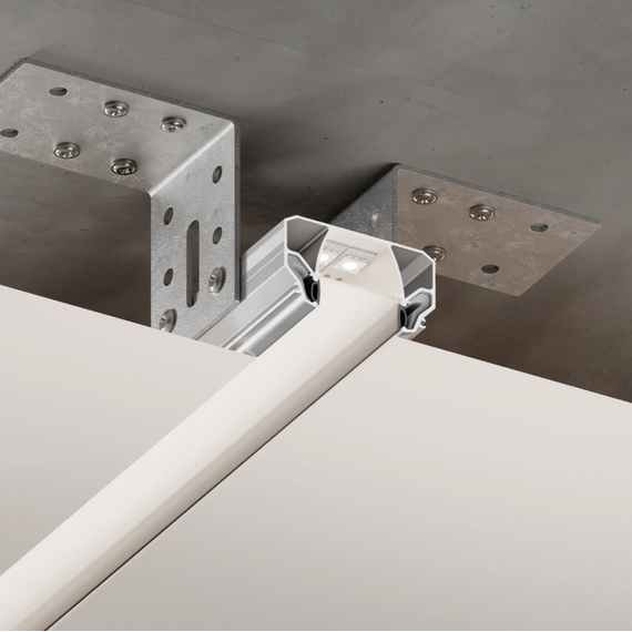 Утопленная световая линия для основного освещения с экраном 30 мм, утопленным в профиль на 11 мм. Профиль оснащён гарпунной системой крепления полотна и закрывается декоративной вставкой PVC 8, обеспечивая аккуратный и эстетичный внешний вид.