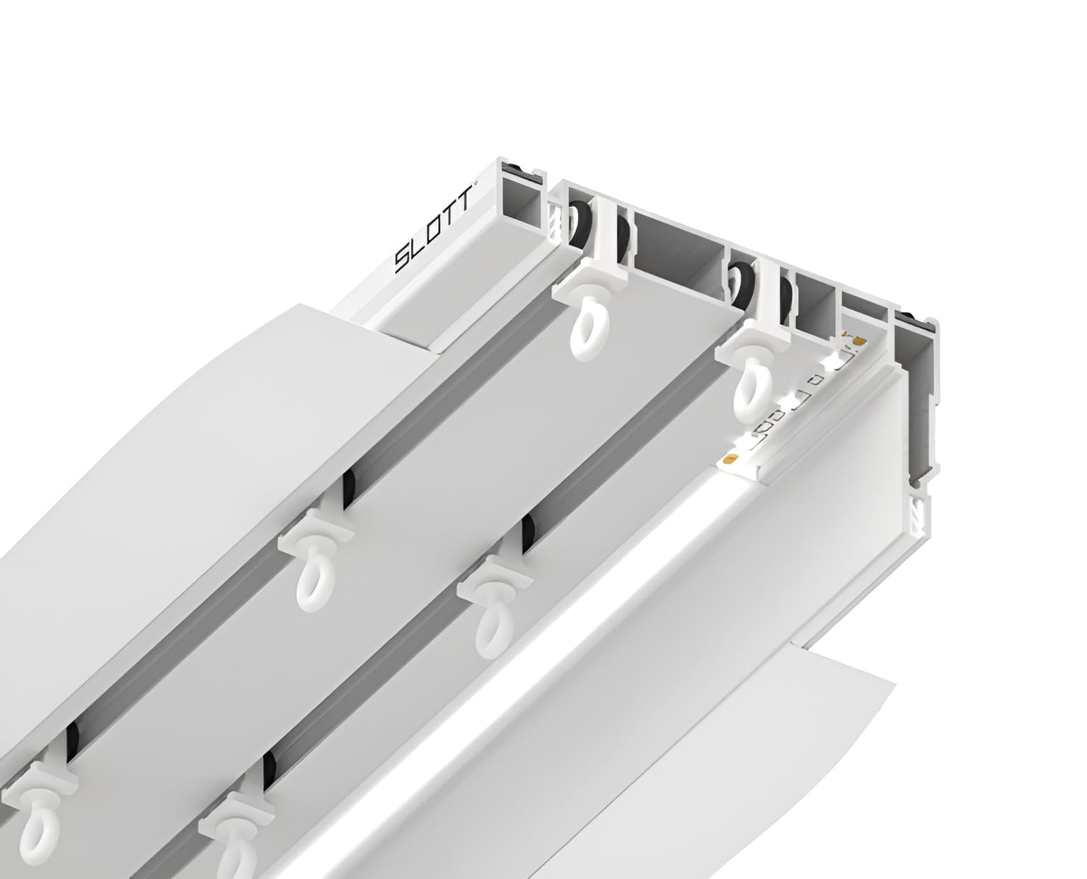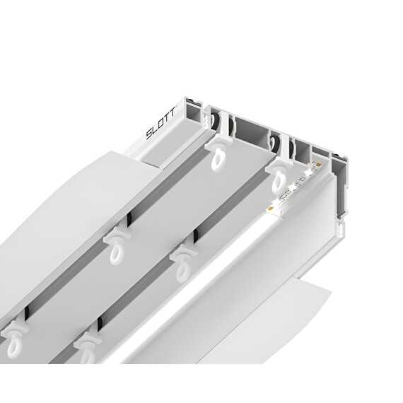 Система SLOTT Parsek — это механический двухрядный карниз, где первый ряд предназначен для штор, а второй — для тюля. Профиль изготовлен из цельного алюминия, что обеспечивает его прочность и долговечность. Особенностью карнизной системы является специально разработанный выступающий край, который формирует нишу и скрывает бегунки от глаз, оставляя видимой только штору. Профиль комплектуется демпфером. Гардинный профиль SLOTT Parsek оснащен скрытой системой освещения с встроенным рассеивателем, направляющим свет строго вниз по шторе. Это декоративное освещение придает помещению уют и стиль. Светодиодная лента для подсветки не входит в комплект и приобретается отдельно в зависимости от желаемых характеристик (цветовая температура, мощность, напряжение и т.д.). Если дополнительное освещение не требуется, ленту можно не устанавливать.