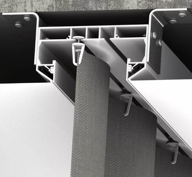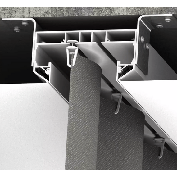 Скрытый карниз 01 представляет собой цельнометаллический профиль белого или черного цвета с двумя рядами для крепления крючков. Карниз имеет оптимальную глубину, позволяющую скрыть крючки и складки шторы. Возможна установка светодиодной ленты для подсветки штор. Конструкция профиля предусматривает фиксацию полотна при помощи гарпунной системы крепления. Паз для фиксации гарпуна закрывается маскирующей вставкой, алюминиевой или ПВХ. Оптимальное решение для оформления оконного пространства в любом помещении.