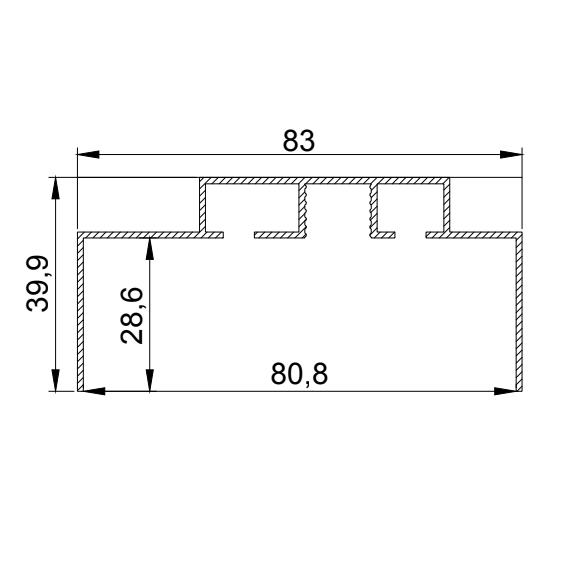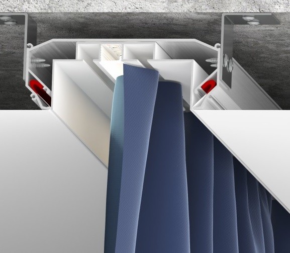 Один профиль выполнен в виде ниши (профиль DK), в которой фиксируется полотно, второй- в виде алюминиевого карнизного вкладыша (профиль VDK) с двумя рядами для крепления штор.