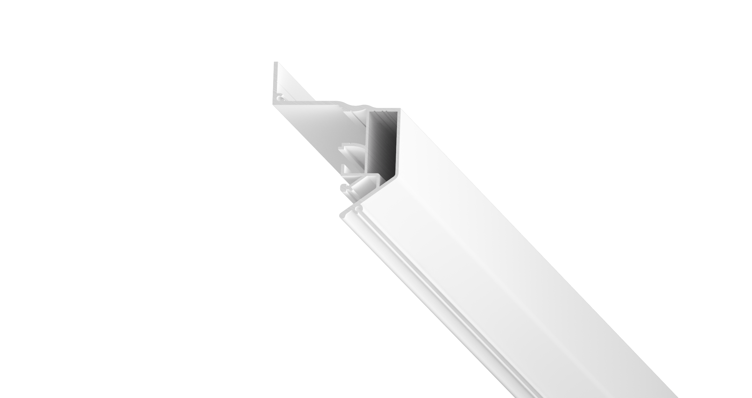 Алюминиевый профиль Lumfer Volat предназначен для установки безрамного «парящего» потолка с возможностью установки светодиодной ленты, которая впоследствии закрывается ПВХ рассеивателем для равномерного рассеивания света.