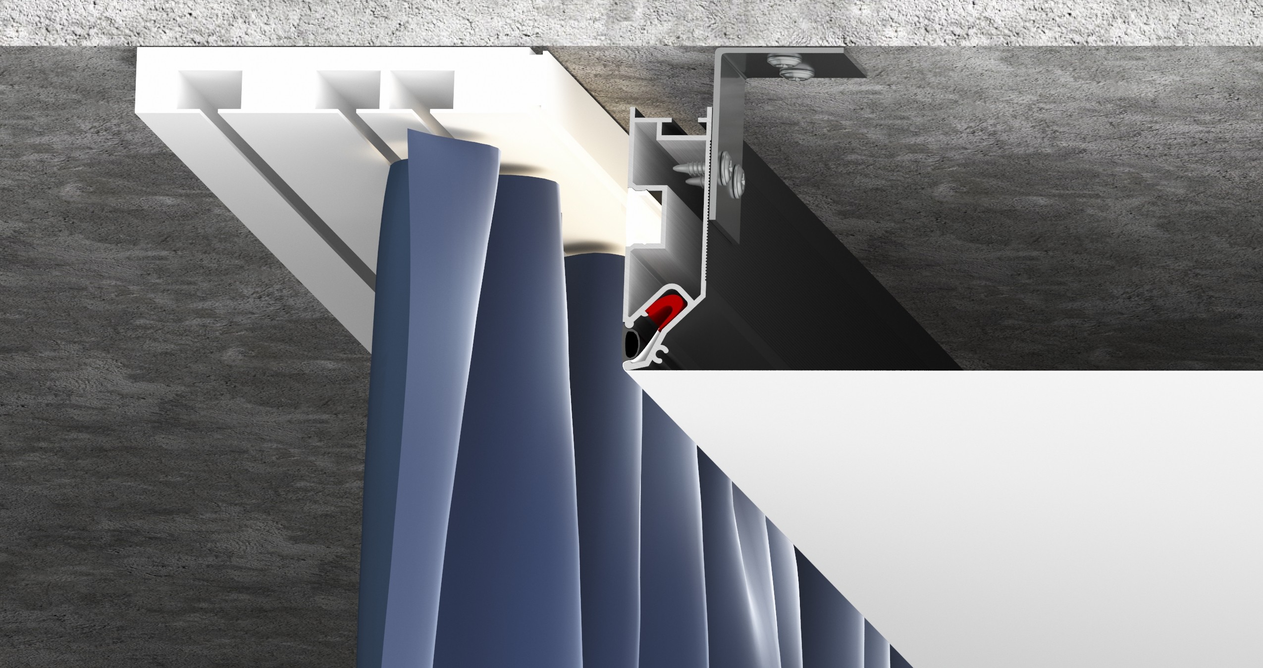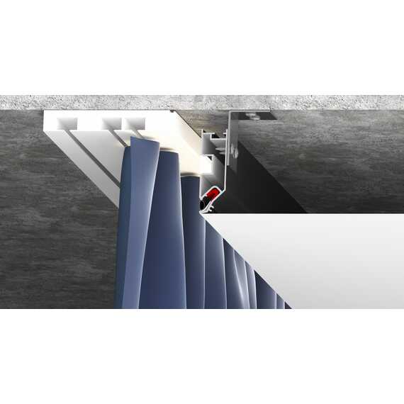 Переход для карниза – это специальный алюминиевый профиль, окрашенный в белый или черный цвет, предназначенный для изготовления ниши под карниз. Конструкция профиля предусматривает возможность установки подсветки. Паз для светодиодной ленты закрывается ПВХ рассеивателем для более равномерного и плавного рассеивания света. Паз для заправки гарпуна закрывается разделительной вставкой.
