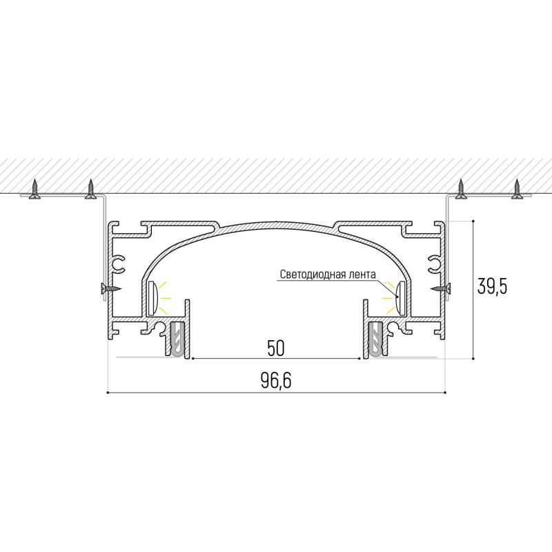 Профиль предназначен для эксплуатации совместно с продольной светодиодной лентой различной мощности.