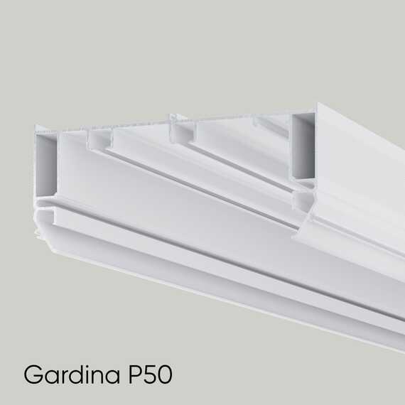 Профиль А2 ALTEZA P-50 Гардина МАТОВЫЙ БЕЛЫЙ - это скрытый “П-образный” карниз с алюминиевым бампером и встроенной подсветкой.