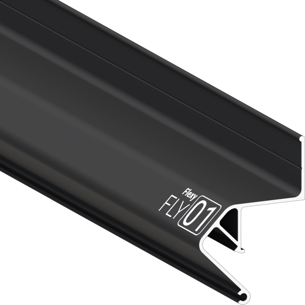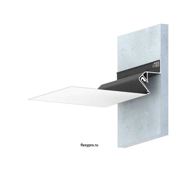 Стеновой парящий профиль Flexy FLY 01 для натяжных потолков с гарпунной системой крепления полотна. С полкой для светодиодной ленты. Без светорассеивающей вставки.