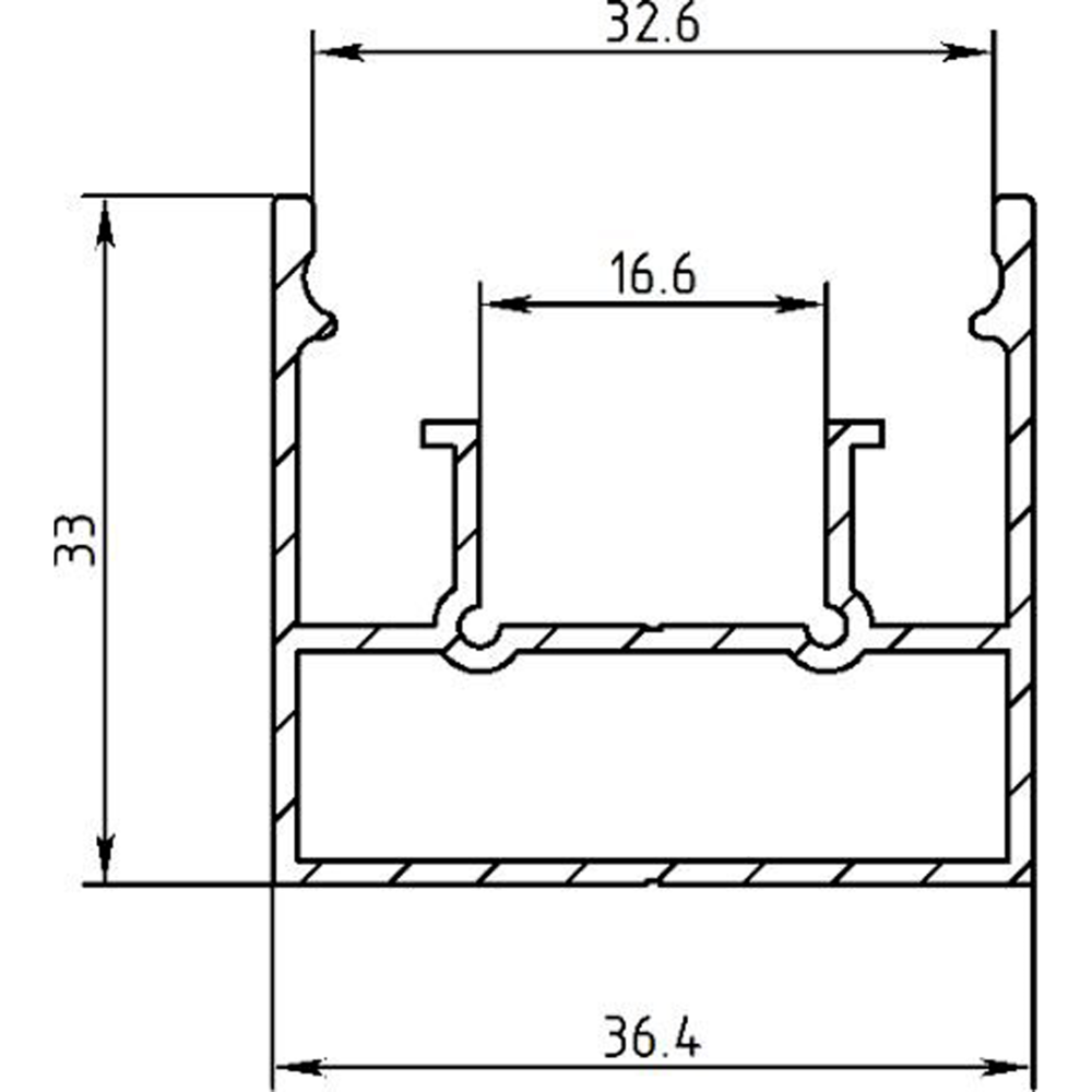 Встраиваемый светодиодный профиль для монтажа световых линий в натяжной потолок. Габаритные размеры (L×W×H): 2000x33x30 мм. Ширина площадки для светодиодной ленты 27 мм.
