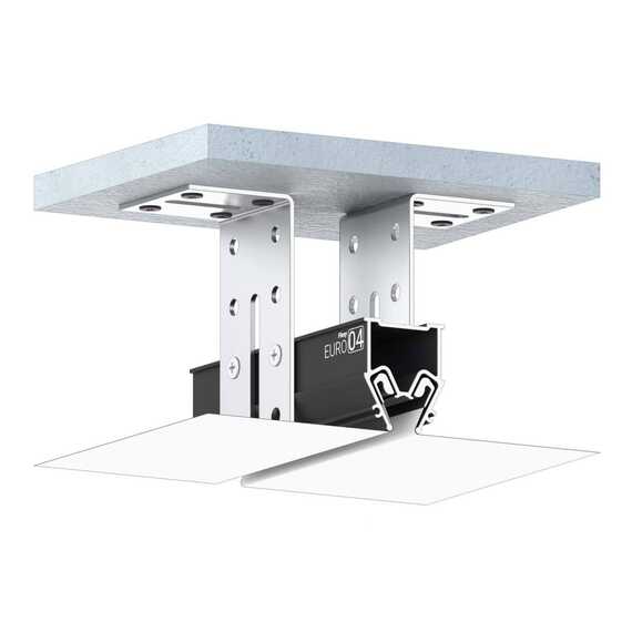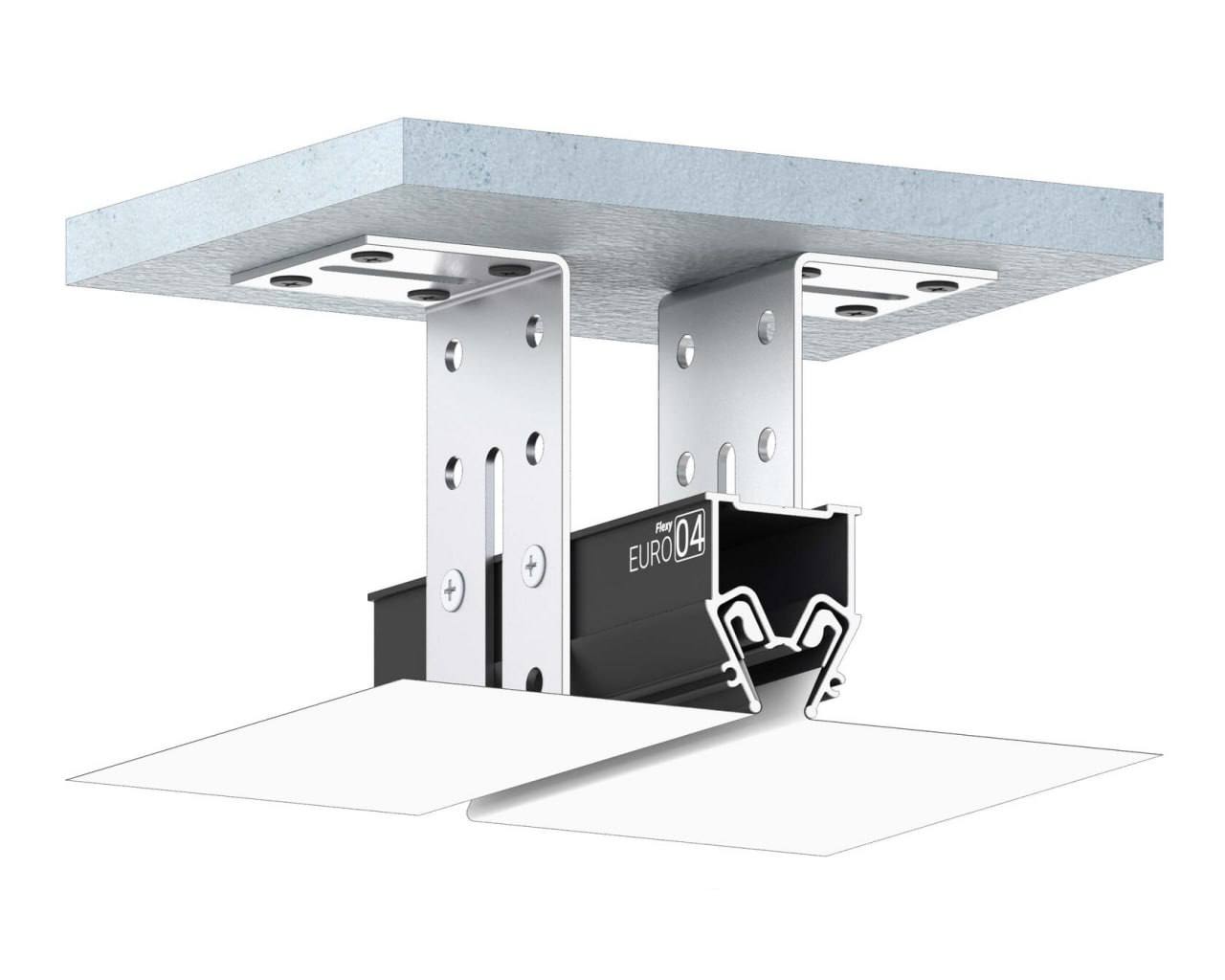 Разделительный профиль Flexy EURO 04 с теневым зазором для натяжных потолков с гарпунной системой крепления полотна. Используется для наклонных натяжных потолков на мансардах либо для разделения поверхности полотна на несколько сегментов без использования разделительной вставки.