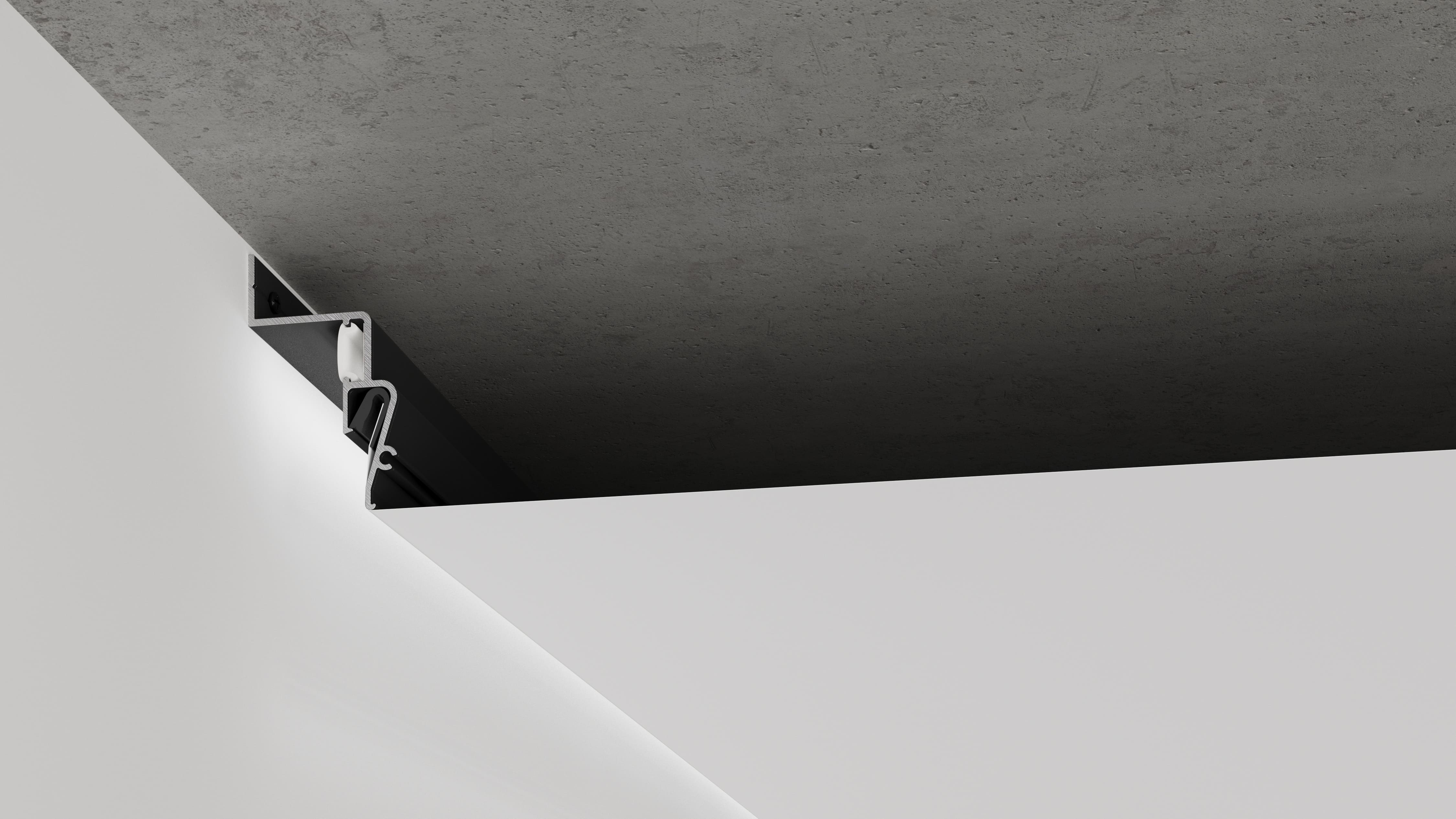Стеновой профиль Contour-Pro для контурной подсветки вдоль стен по технологии ”парящего потолка” c использованием светодиодной ленты и светорассеивающей вставки. Он позволяет создавать аккуратную, компактную и равномерную контурную подсветку вдоль стен, реализуя эффект "парящего потолка" с использованием LED-технологий. Это удобное и функциональное решение для современных интерьеров.