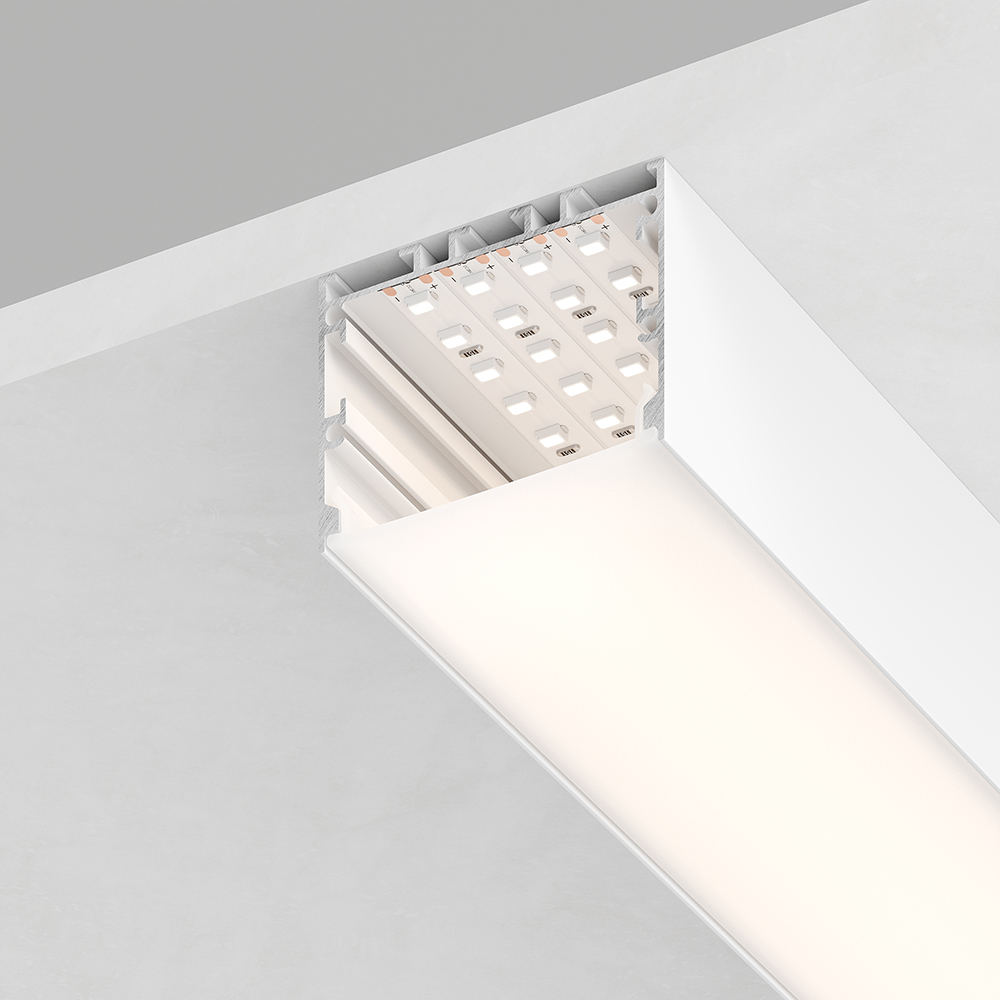 Профиль алюминиевый Линии света накладной, белый, CAB257 с матовым экраном, 2 заглушками, 4 крепеж