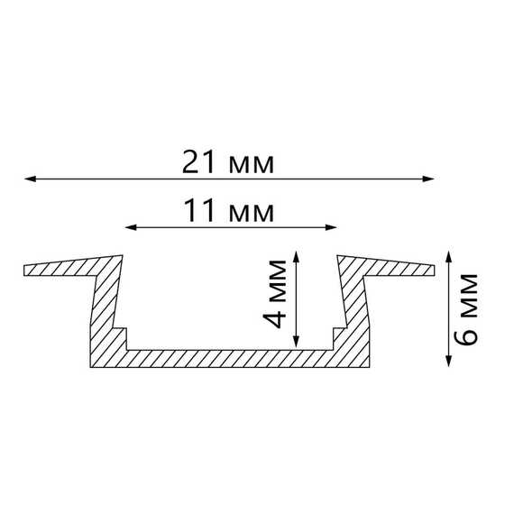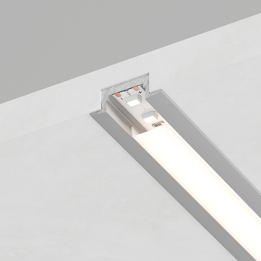 Профиль алюминиевый встраиваемый без крепежей, серебро, CAB251 с матовым экраном, 2 заглушками в к