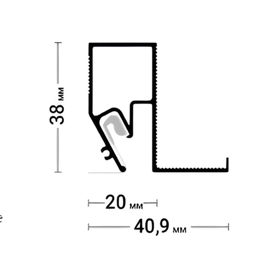 Теневой профиль Flexy BRUS 06 для натяжных потолков с гарпунной системой крепления полотна. Для обхода лестничных проемов и мансардных окон.