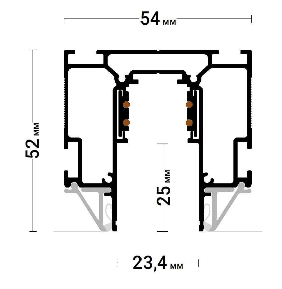 Трековый профиль Flexy IZI TREK 01 со встроенными тоководоми для натяжных потолков. В профиль Flexy IZI TREK 01 устанавливаются трековых светильников Flexy LIGHT 20 и 2038.