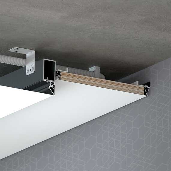 Область применения практически безгранична. Профиль позволяет красиво “оборвать” натяжной потолок с получением ровного закрытого торца