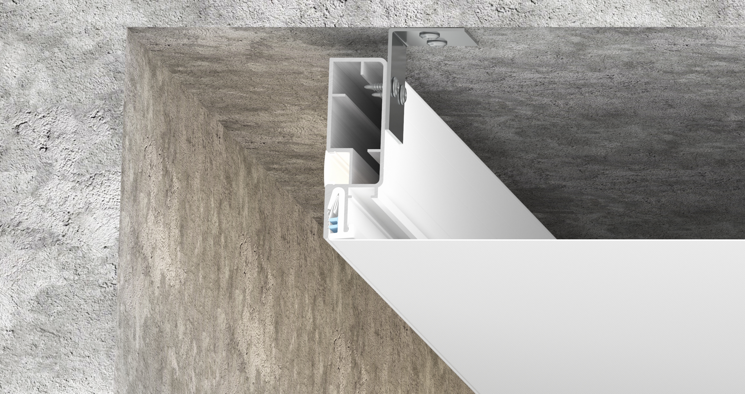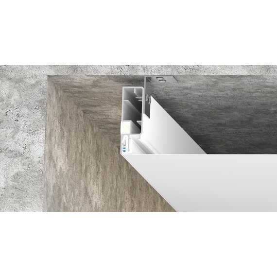 - Паз для светодиодной ленты закрывается ПВХ экраном для более равномерного и плавного рассеивания света.