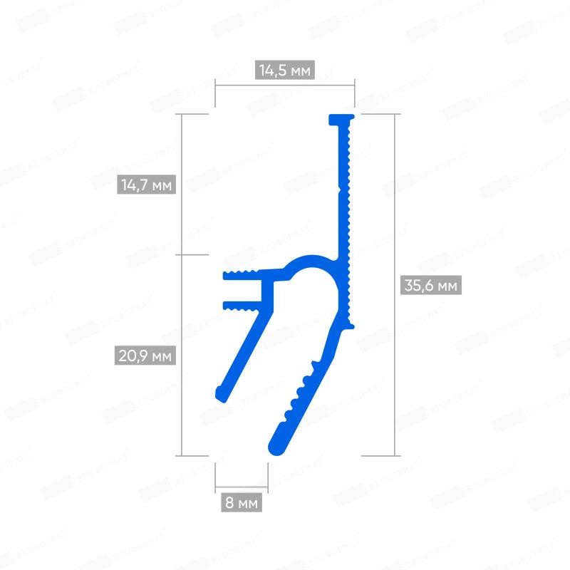 Система крепления полотна состоит из алюминиевого профиля Umbra и двухкомпонентной вставки CLAMP. Данное техническое решение позволяет без особых усилий, максимально надежно фиксировать полотно, избегая его нежелательного повреждения.