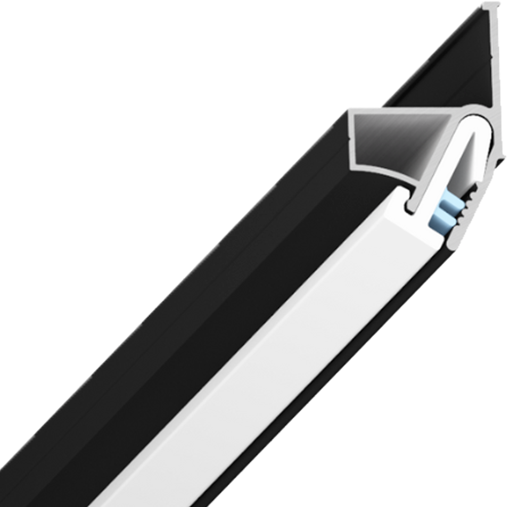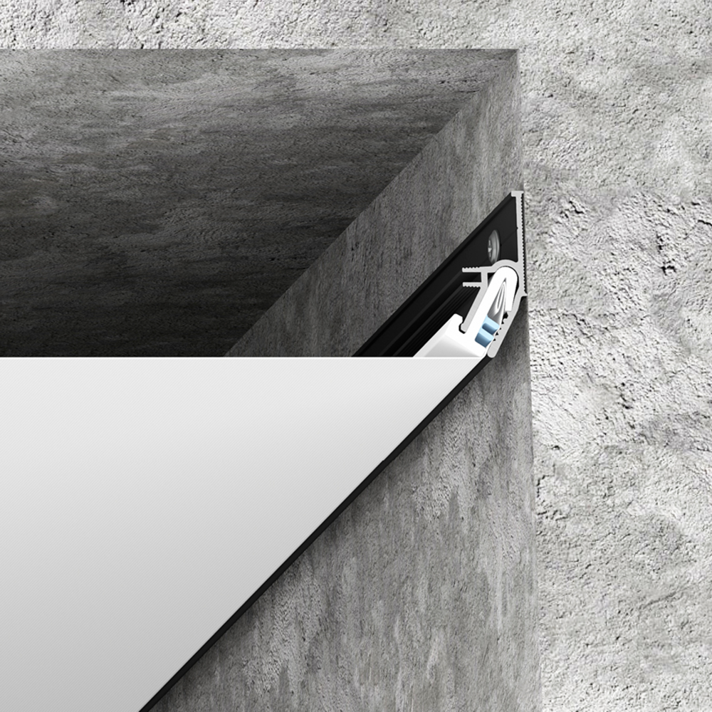 Профиль LUMFER Clamp Umbra Теневой Чёрный 2 п.м. — это инновационное решение для создания стильного и современного натяжного потолка. Данная конструкция выделяется своей визуальной особенностью: она образует теневую зону по периметру помещения шириной 8 мм, что позволяет добиться идеально ровного темного контура без необходимости установки заглушки.