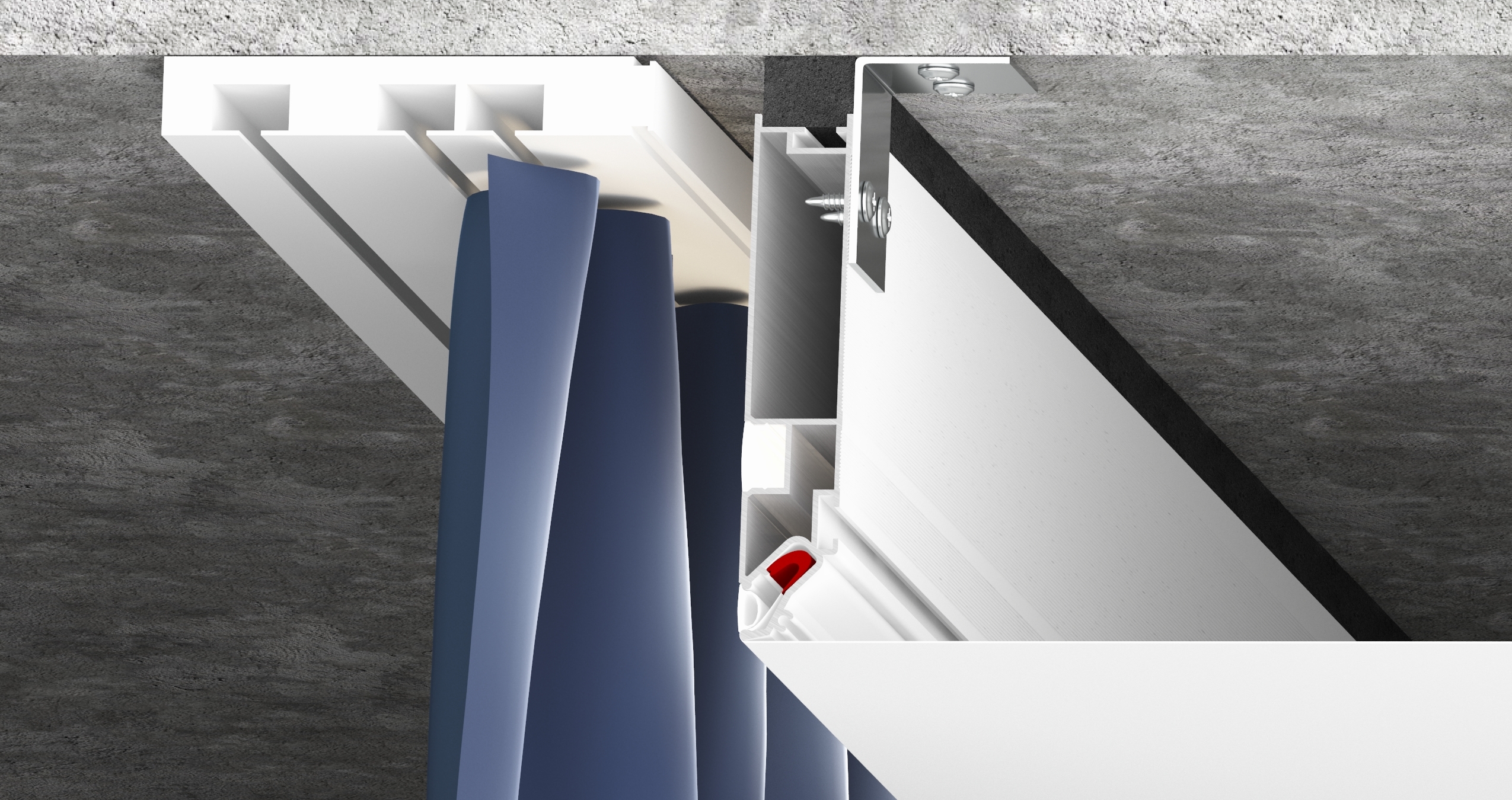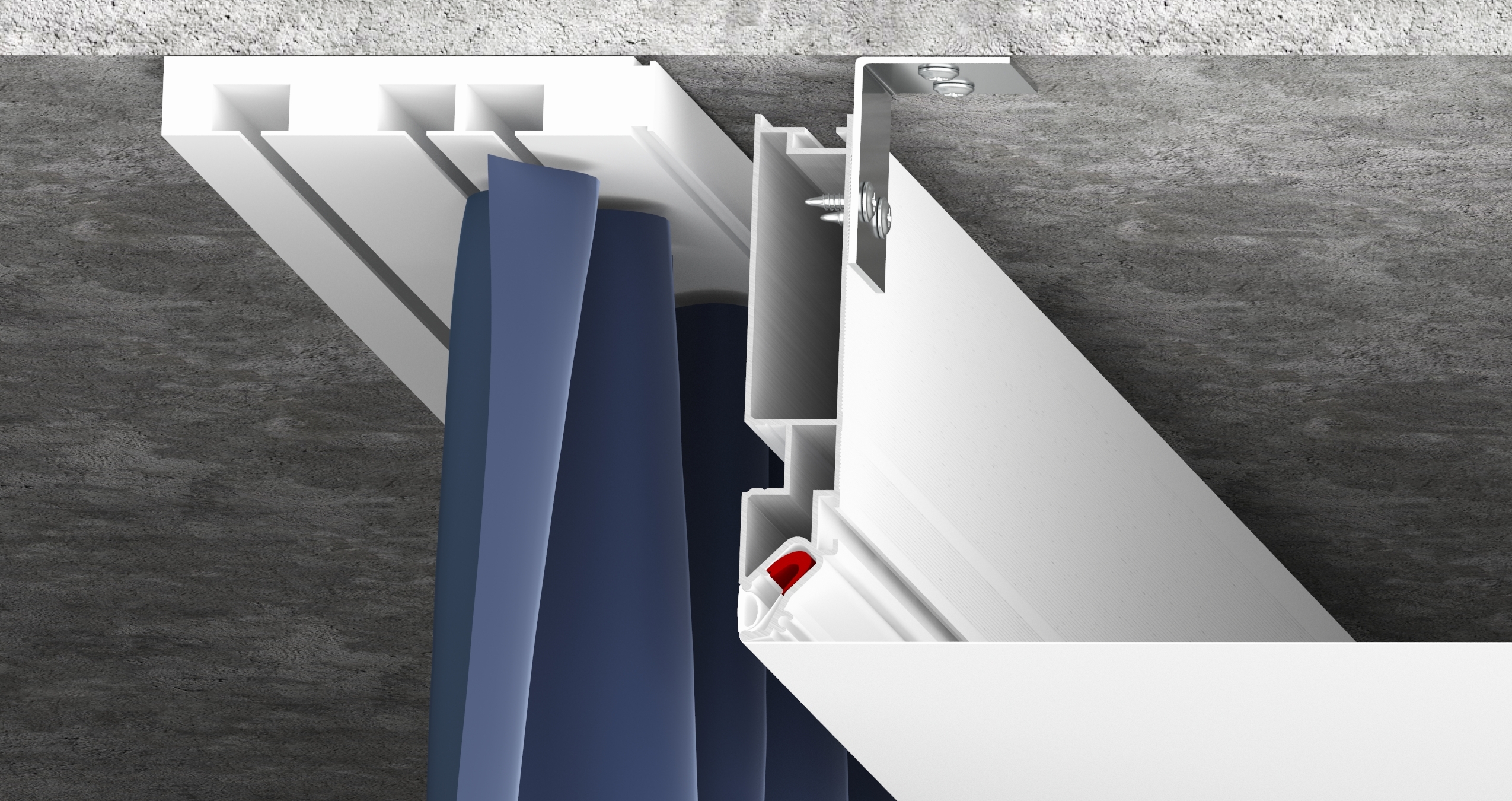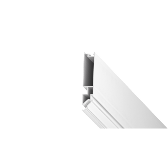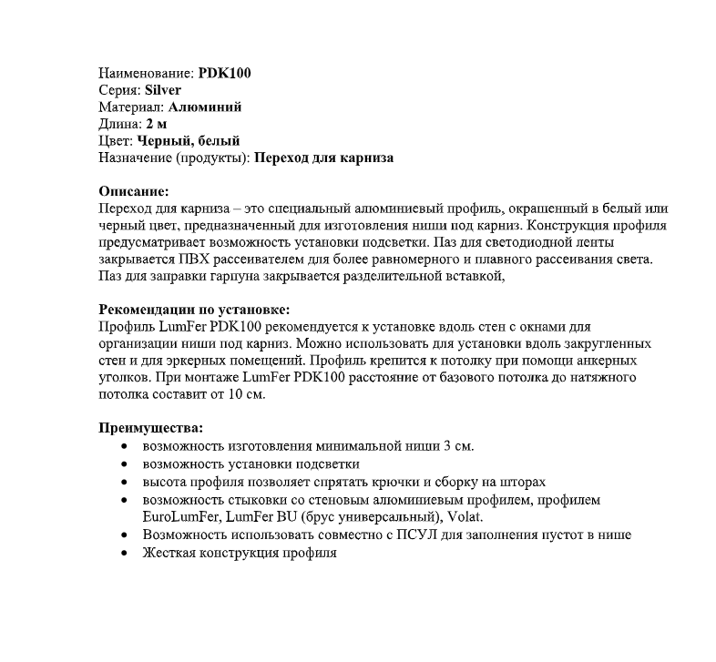 Переход для карниза – это специальный алюминиевый профиль, окрашенный в белый или черный цвет, предназначенный для изготовления ниши под карниз. Конструкция профиля предусматривает возможность установки подсветки. Паз для светодиодной ленты закрывается ПВХ рассеивателем для более равномерного и плавного рассеивания света. Паз для заправки гарпуна закрывается разделительной вставкой.