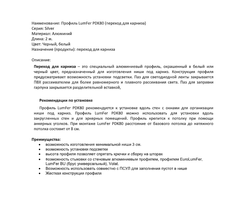 (Л74) Профиль LumFer PDK80 (2м) белый АХ-5482