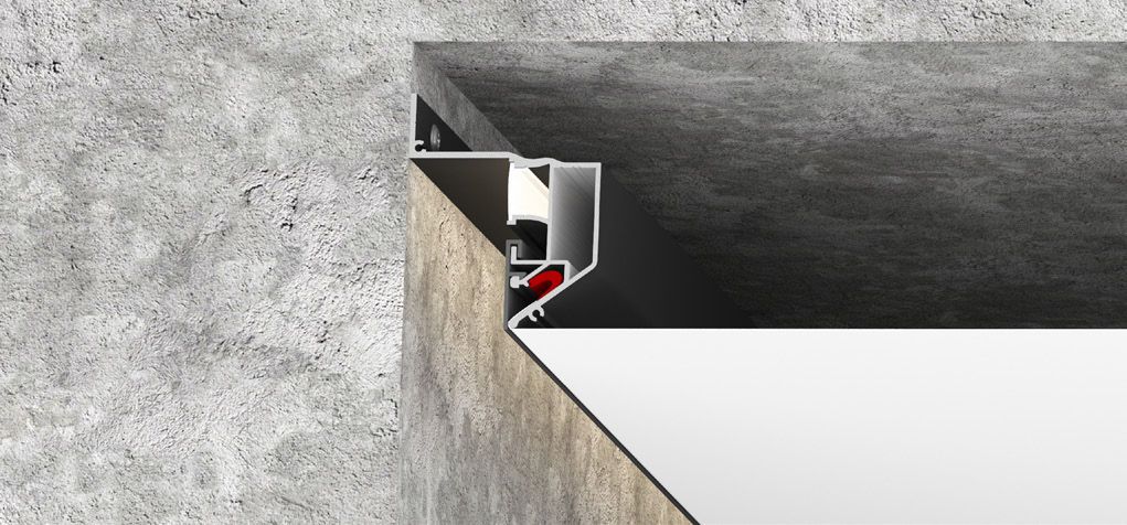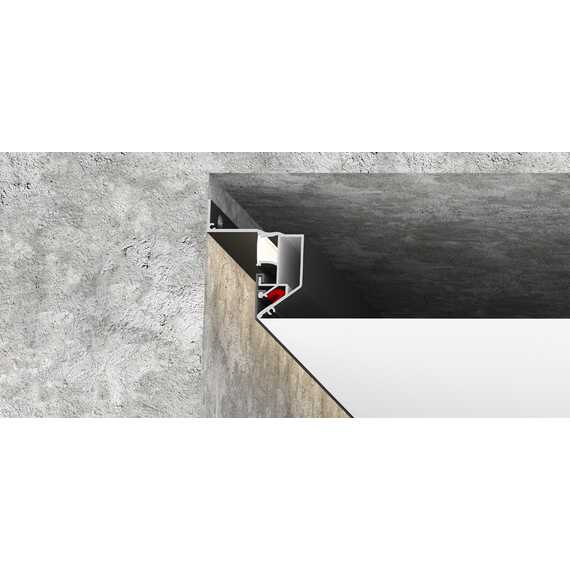 Профиль предназначен для установки безрамного потолка с возможностью установки светодиодной ленты, которая впоследствии закрывается ПВХ рассеивателем для равномерного рассеивания света. Также в этом виде профиля есть возможность замаскировать паз для гарпуна специально вставкой ПВХ либо алюминиевой.