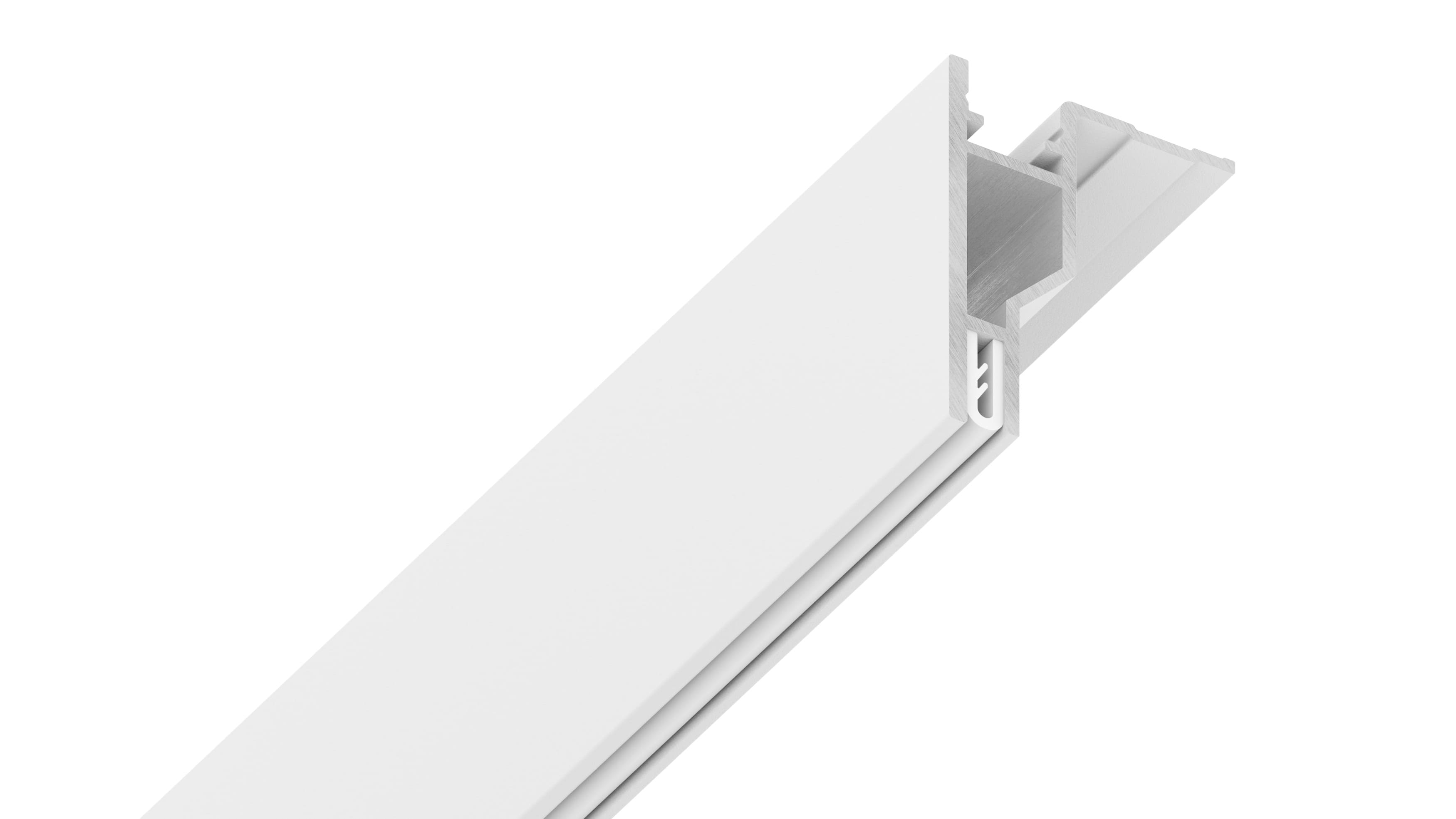 Профиль доступен в высотах 40 мм, 60 мм и 80 мм, что позволяет подобрать оптимальное решение для различных дизайнерских задач. Оснащен множеством элементов, которые упрощают монтаж и расширяют функционал, таких как возможность установки светодиодной ленты с рассеивателем для декоративной подсветки.