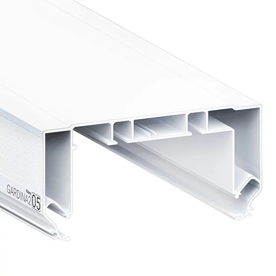 Профиль Flexy GARDINA2 05 для изготовления скрытых п-образных карнизных ниш с двумя пазами для установки штор и гардин. С подсветкой. Для гарпунной системы крепления полотна.