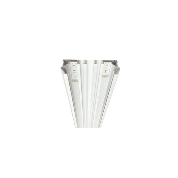 В этом профиле есть специальный паз для установки светодиодной ленты, а также рассеивающая вставка, которую можно приобрести отдельно. Кроме того, есть вставка для гарпунного паза, которая позволяет закрыть технический зазор и создать эстетически приятный вид.