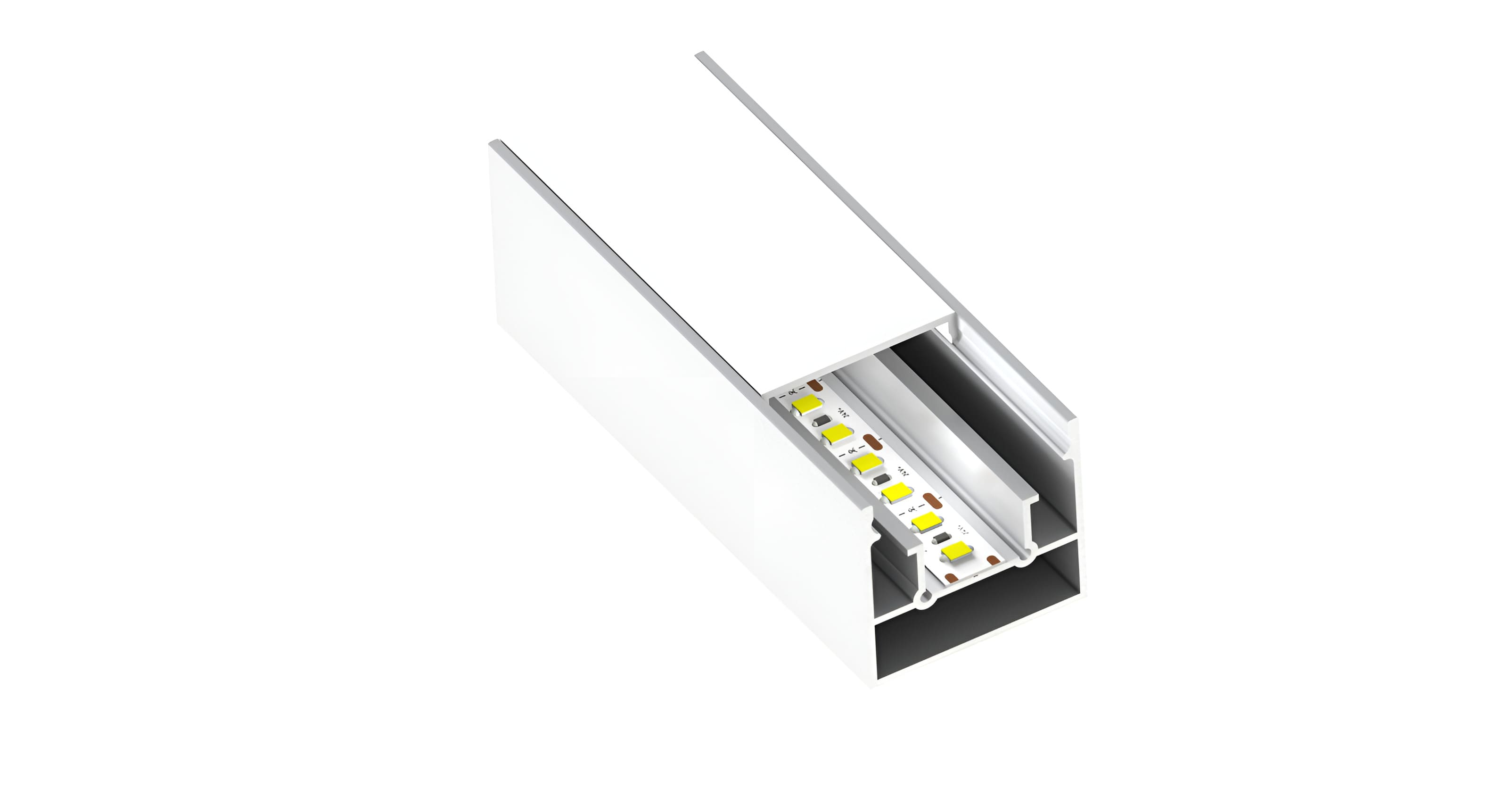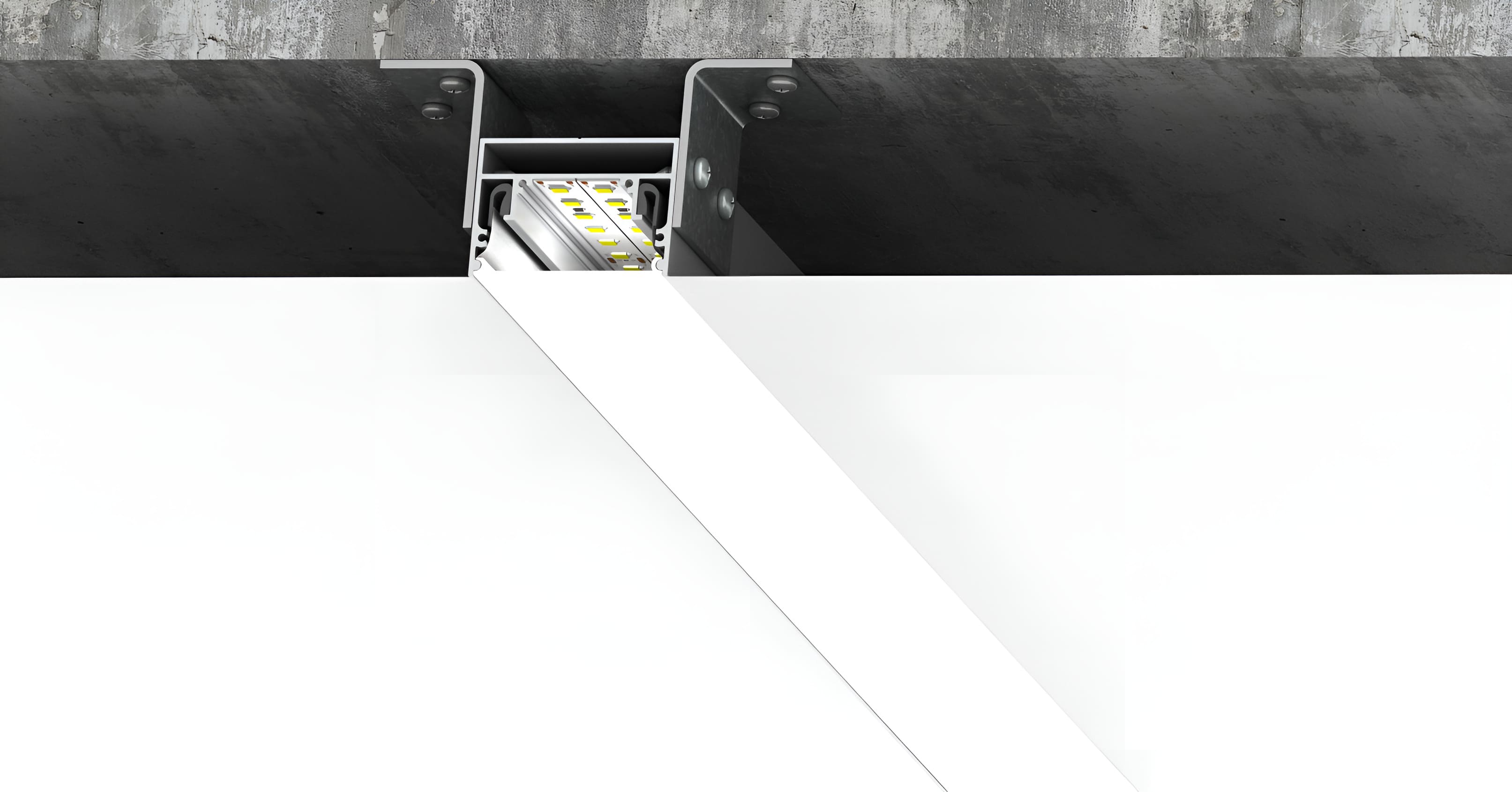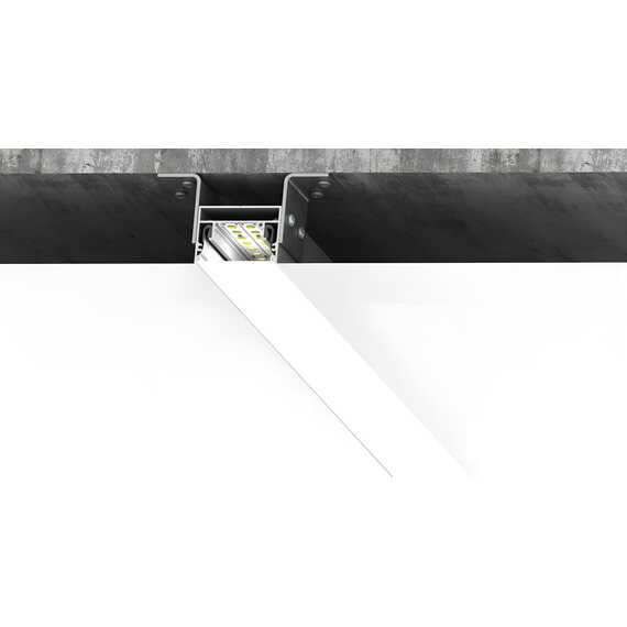 Встраиваемый светодиодный профиль белого цвета для монтажа световых линий в натяжном потолке. Размеры профиля составляют 2000х33х30 мм, с площадкой для размещения светодиодной ленты. К профилю предусмотрены экраны, заглушки и другие аксессуары, которые приобретаются отдельно.