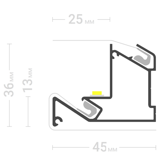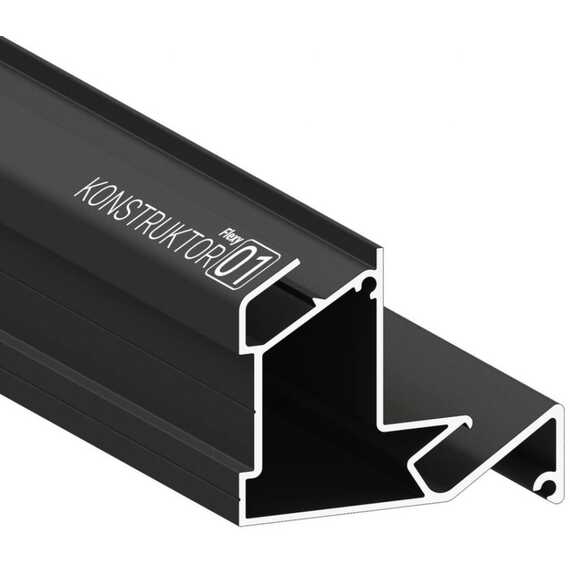 Черный профиль-конструктор имеет гарпунную систему крепления. Используется для изготовления ниш с последующим монтажом спотов. Изготовлен из высококачественного алюминия, имеет 2 уровня. Имеет светорассеивающую нишу под спот-светильник.