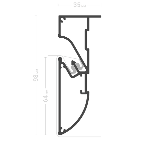 Профиль Flexy FUSION 01 для многоуровневых натяжных потолков с гарпунной системой крепления полотна. С бесщелевым примыканием полотен. Без подсветки.