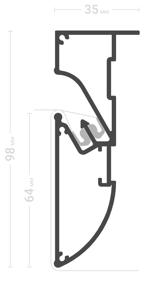 Профиль Flexy FUSION 01 для многоуровневых натяжных потолков с гарпунной системой крепления полотна. С бесщелевым примыканием полотен. Без подсветки.
