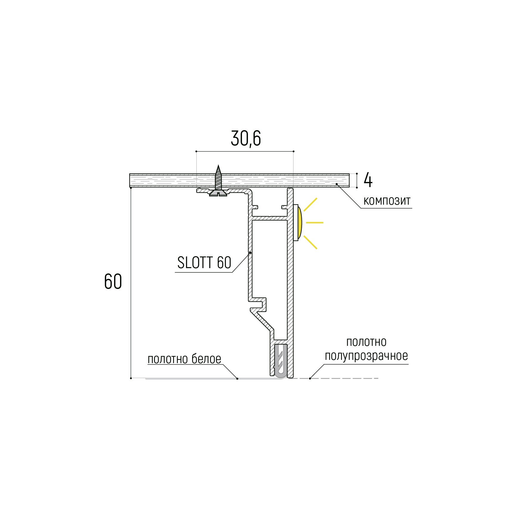 Конструктивные профили для ПВХ и тканевых натяжных потолков. Относятся к классу демпферных потолков. Благодаря разработке — специальному демпферному узлу, профили надёжно и равномерно удерживают полотно. При этом достигается бесщелевое, эстетичное прилегание полотна к металлу.