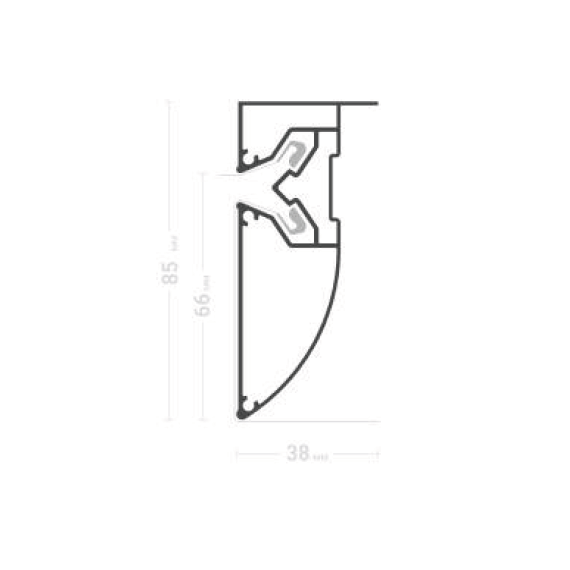 НАПИЛЕННЫЙ профиль Flexy STANDART 04 для криволинейных многоуровневых натяжных потолков с гарпунной системой крепления полотна. С разделительной вставкой. Без подсветки. Напиленный.