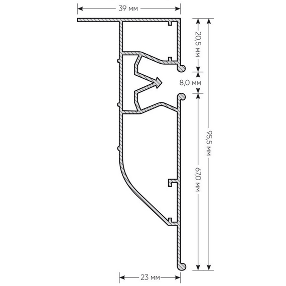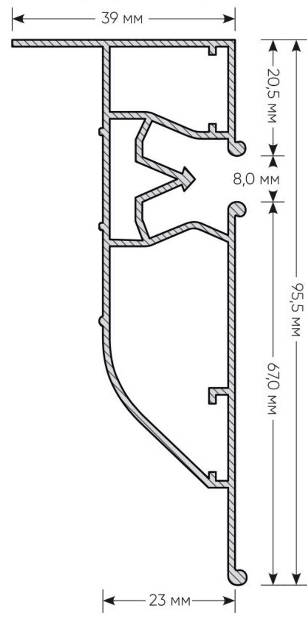 Профиль изготавливается из прочного алюминиевого сплава, поэтому гарантирует прочность и