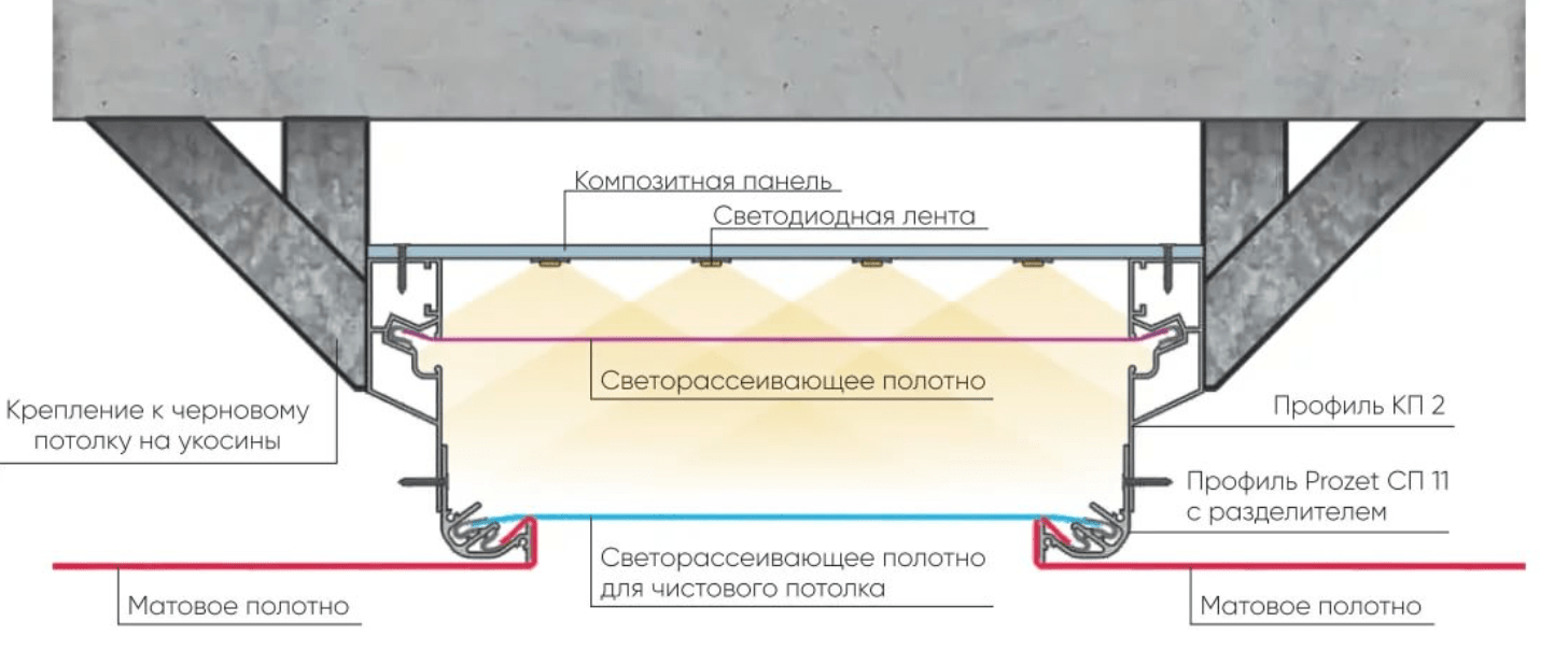 - Универсальность решения - возможность создавать световые короба различной конфигурации и световые линии любой ширины.