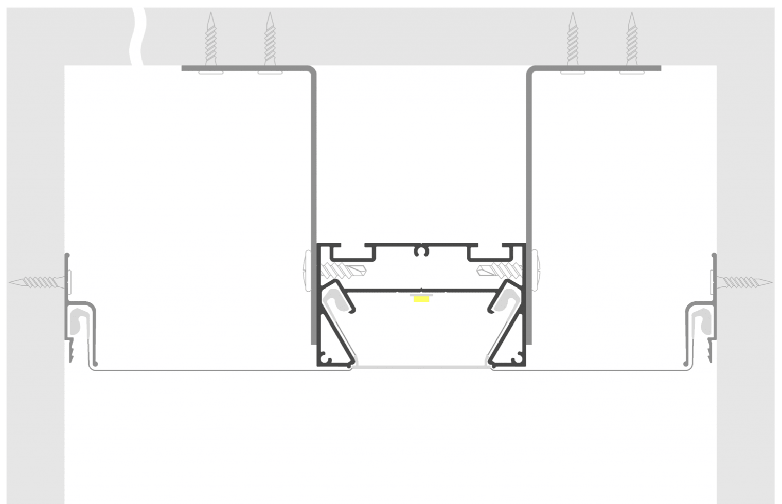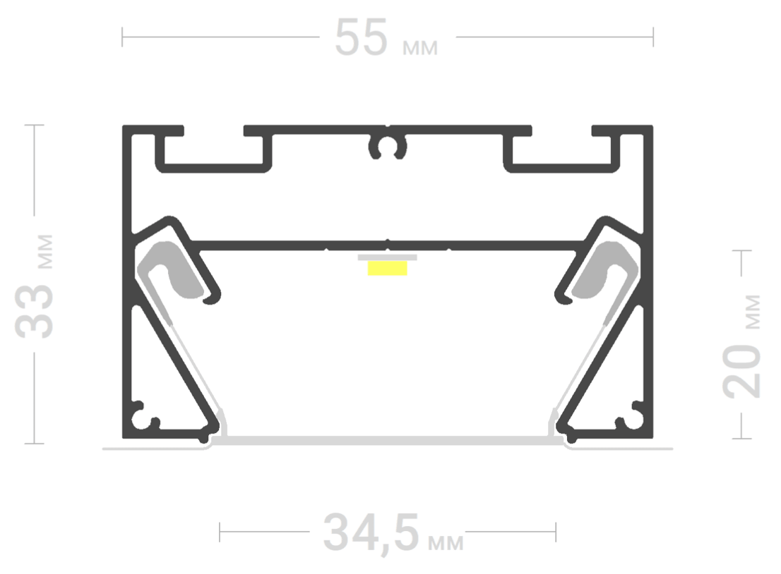 - Дает возможность изготавливать световые линии шириной 35 мм без выступающего светорассеивающего экрана. Экран находится в одной плоскости с полотном.