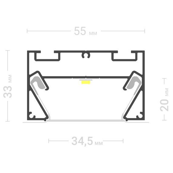 Профиль ПФ-0044 Трек подходит как для монтажа световой линии вместе со светорассеивающей вставкой, так и для установки шинопровода для трековых систем освещения.