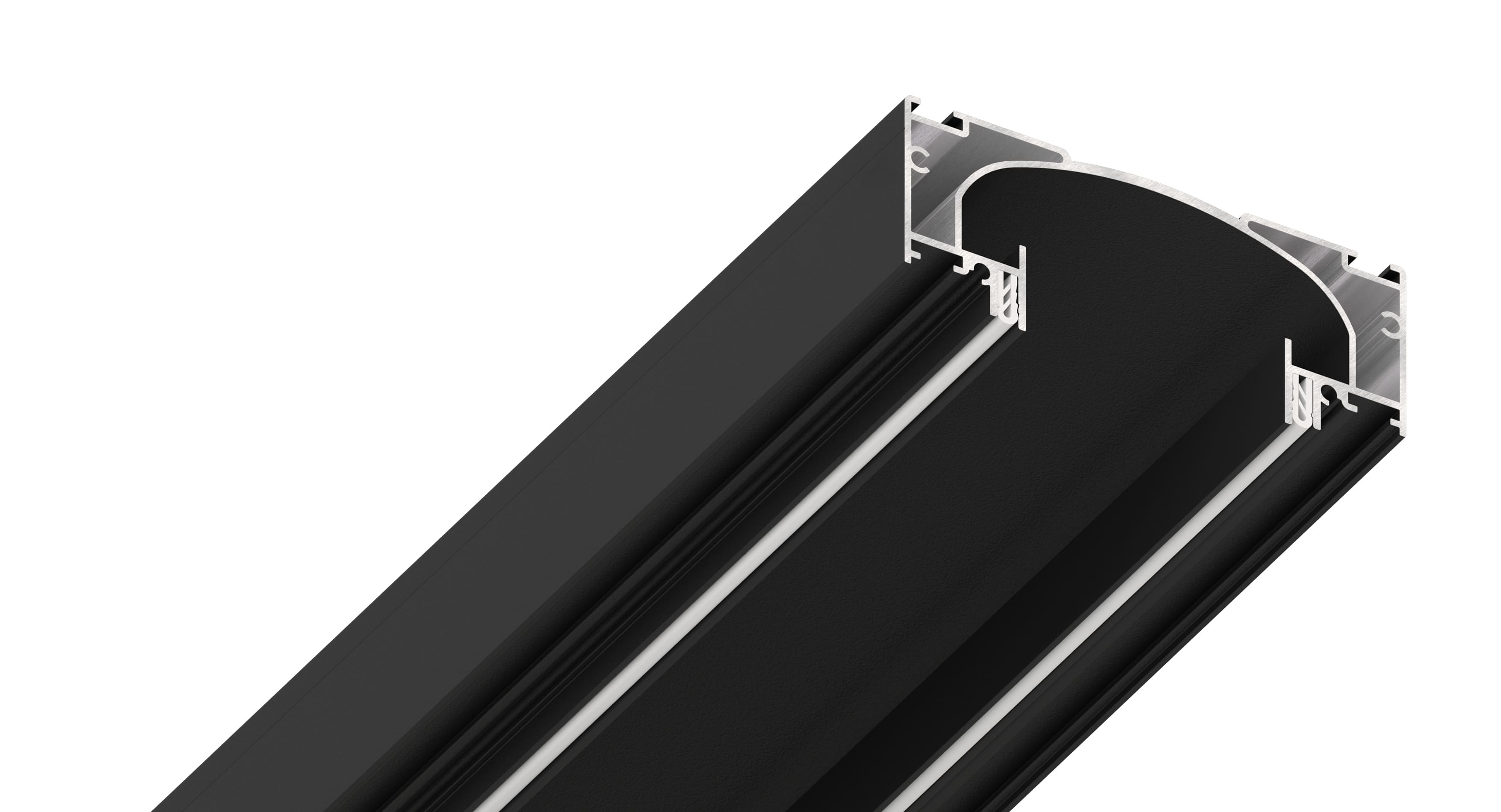 Система может быть установлена в открытом виде или с использованием полупрозрачного рассеивателя. Профиль доступен в трех цветовых вариантах: черно-белый и белый для продольного освещения, а также черный для установки дополнительных светильников. Световые линии могут использоваться как основное, так и декоративное освещение, придавая потолку эффектный и интересный вид, что делает их популярным выбором в дизайне интерьеров.