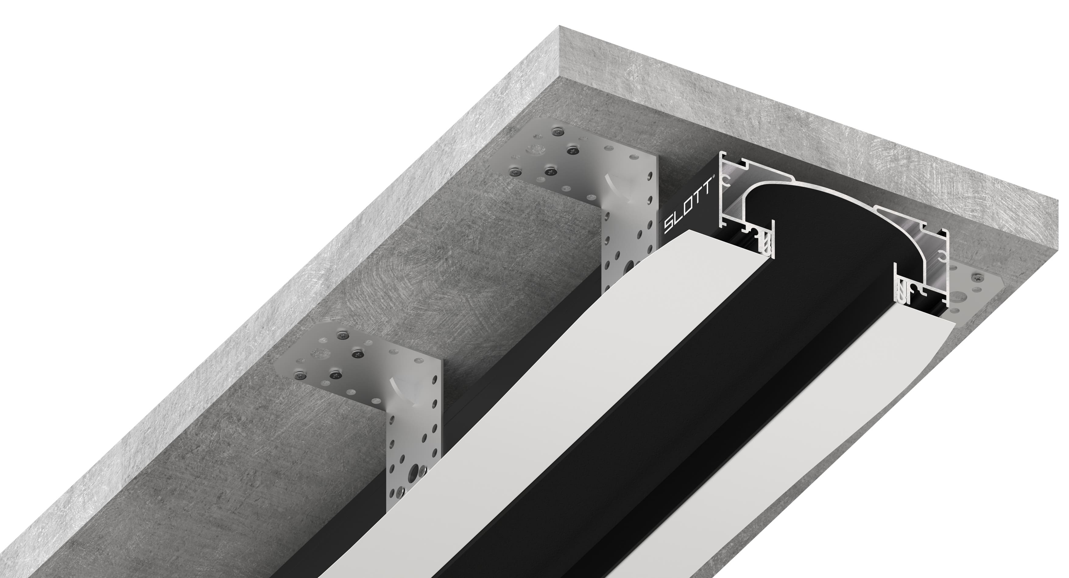 Профиль Kraab SLOTT 2.0 – нишевая световая линия отличается тем, что не требует использования рассеивателей и маскировочной ленты. Такая конструкция придает натяжному потолку более эстетичный вид. Демпферный потолок представляет собой современное решение для натяжных потолков из ПВХ или ткани, обеспечивая их аккуратное и стильное оформление.