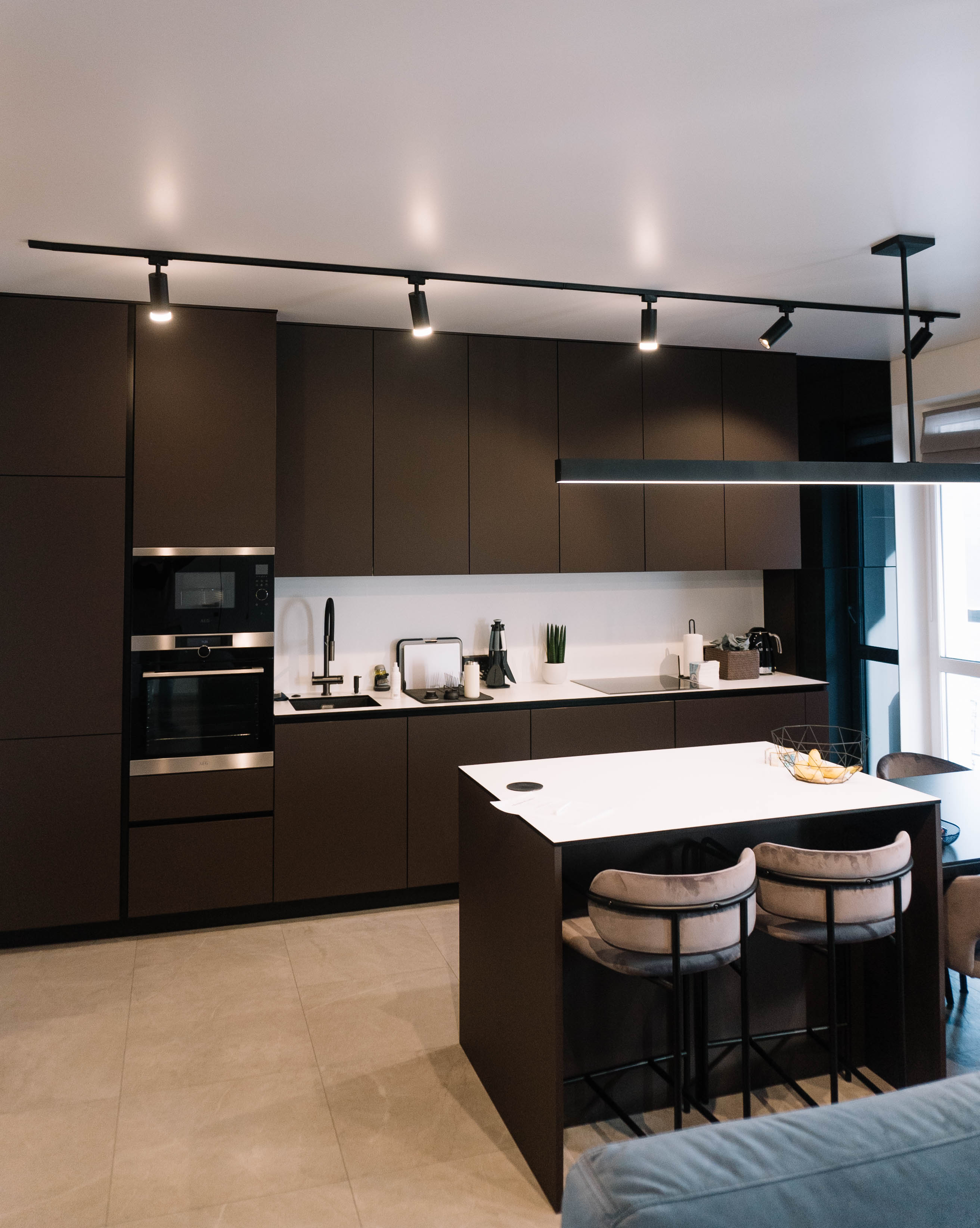 назначения с использованием трекового освещения. Конструкции можно выполнять различной
