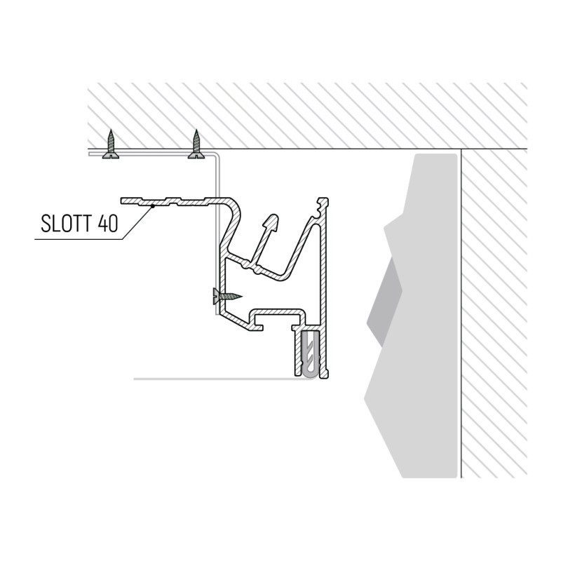 Профиль SLOTT 40 — это многофункциональный алюминиевый профиль, предназначенный для установки ПВХ и тканевых натяжных потолков. Этот профиль относится к классу демпферных систем, благодаря чему обеспечивается надежное и равномерное удерживание полотна, создавая бесщелевое и эстетичное прилегание к металлу.