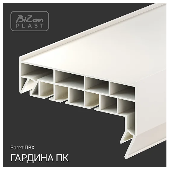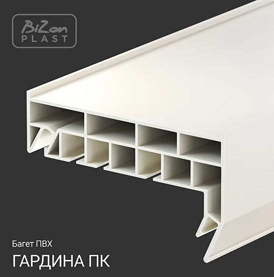 Гардина Г-обр БИЗОН ПВХ ПК-15 — это двухрядный карниз для штор длиной 3,2 метра, предназначенный для монтажа в нишу натяжного потолка.