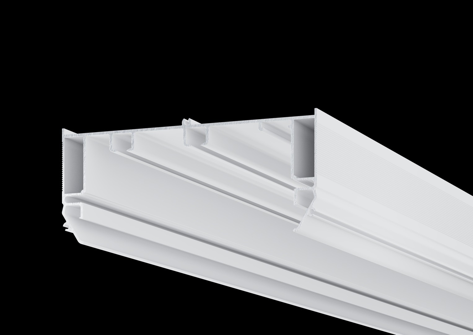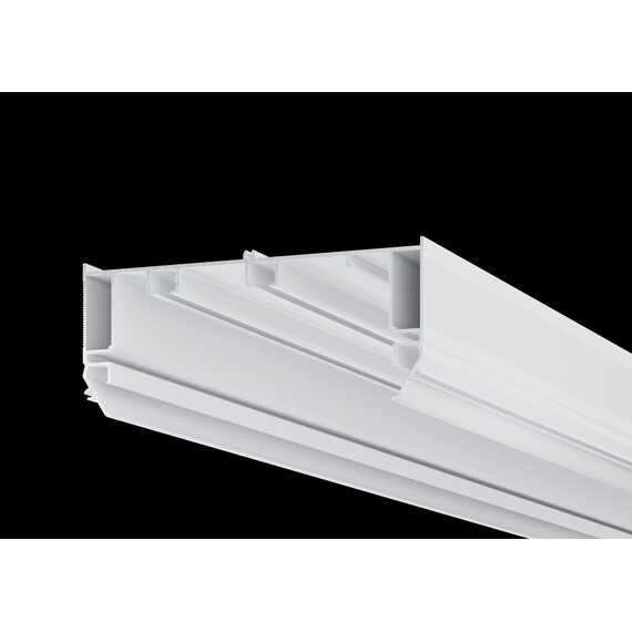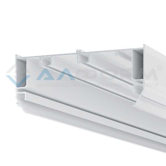 Профиль возможно установить от стены до стены, либо с отступом на нужном расстоянии, используя торцевые заглушки.
