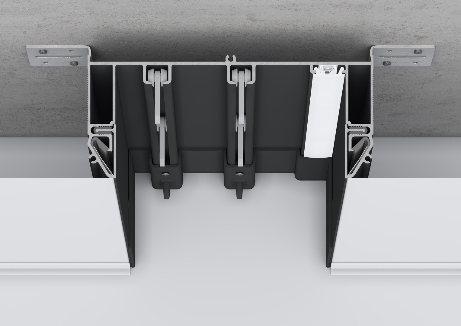 За счет того, что карниз практически незаметен, создается эффект “левитации” шторы, будто она парит в воздухе, не касаясь поверхности потолка, что не нарушает общую гармонию интерьера. Профиль возможно установить от стены до стены, либо с отступом на нужном расстоянии, используя торцевые заглушки.