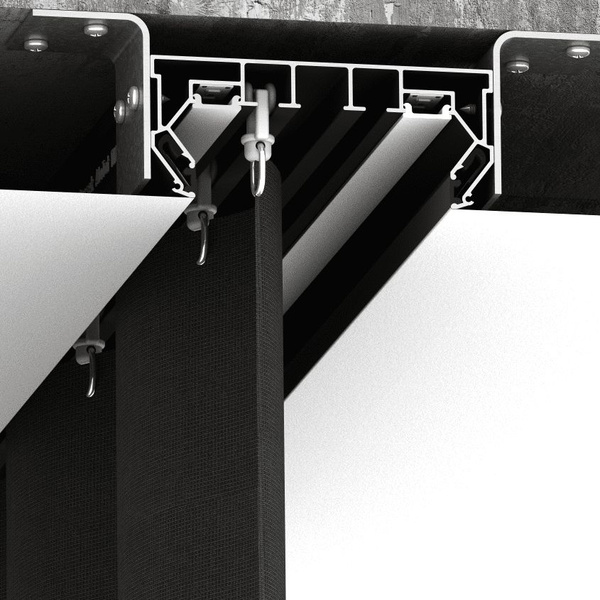 Для создания ниш под карниз в ПВХ потолках, рекомендуется использовать профиль Парсек ПК14 "Двухрядная гардина", чёрный (3,2м). В этом профиле есть специальный паз для установки светодиодной ленты, а также рассеивающая вставка, которую можно приобрести отдельно. Кроме того, есть вставка для гарпунного паза, которая позволяет закрыть технический зазор и создать эстетически приятный вид.