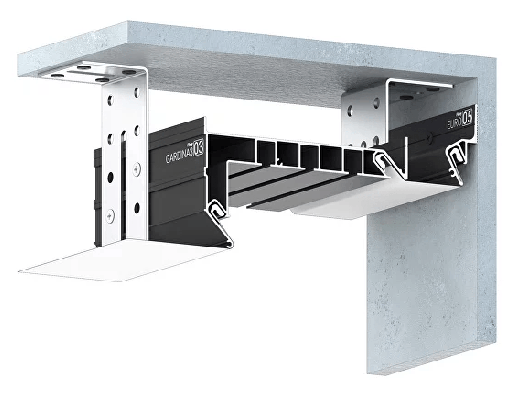 Профиль Flexy GARDINA3 03 для изготовления скрытых карнизных ниш с тремя пазами для установки штор и гардин. Для гарпунной системы крепления полотна с боковой заправкой.