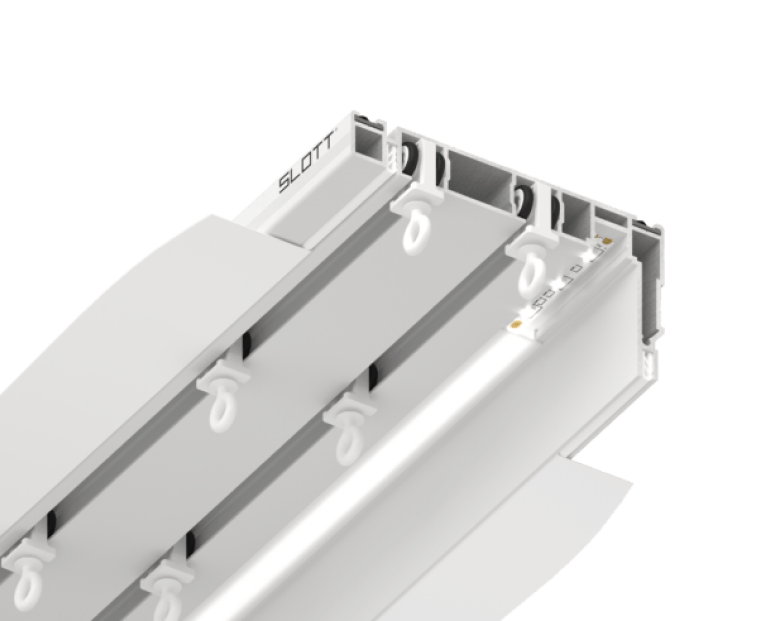 Система SLOTT Parsek — механический двухрядный карниз. Первый ряд предназначен для штор, второй для тюля. Профиль выполнен из цельного алюминия. Карнизная система образует нишу благодаря специально разработанному выступающему краю. Таким образом, бегунки скрыты от глаз, видимой частью остается только сама штора. Профиль поставляется в комплекте с демпфером.